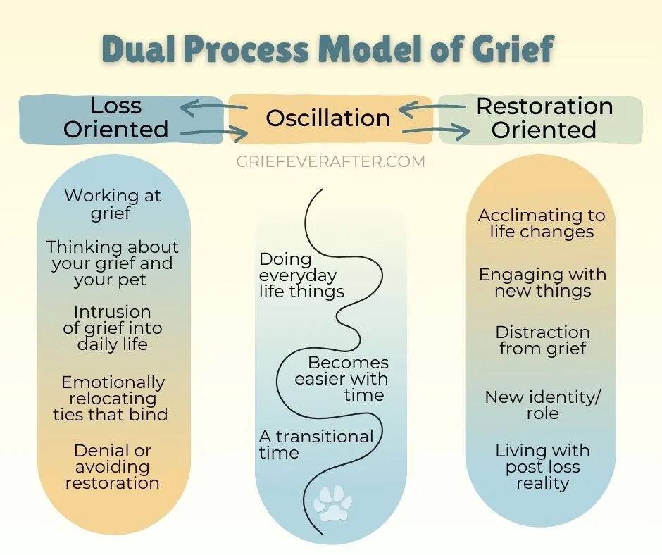 The Dual Process Model of Grief normalizes the back-and-forth nature of emotions that many grieving pet parents experience.